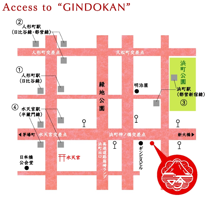 - ①日比谷線人形町駅(明治座口)下車徒歩10分